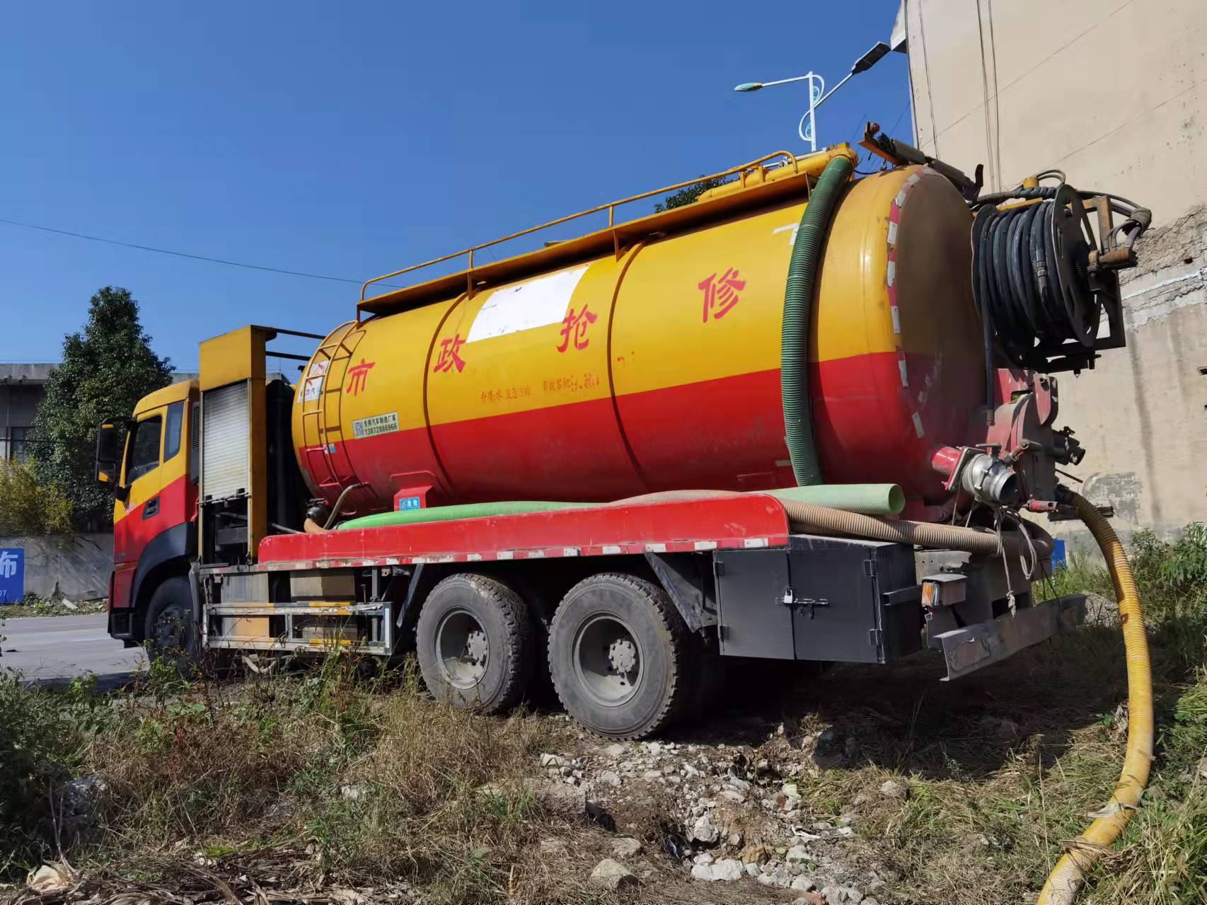 2.把吸粪车开到工作现场,套好吸粪胶管(5m长,备3条)放入化粪池内。