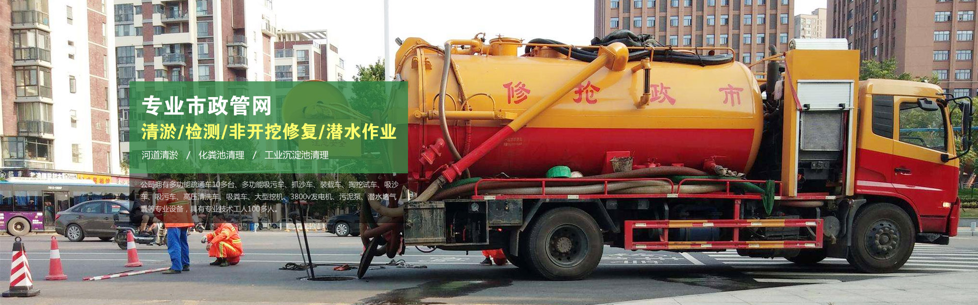 贵州省智乾环保工程有限公司,现拥有大小抽粪车辆20余台,员工100余人,日常作业的疏通车、吸污车、抽粪车、抓斗清淤车、排污泵、氧气呼吸器、管道检测仪等设施设备一应俱全。专业承接全贵州市辖区县及乡镇,抽吸和运送粪便,污水处理及污泥浆处理,市政道路排水管道,城镇、村庄排水管道。长期作业于市政环卫、农业、工业、化工、大中小型工矿企业、小区、学校、商场、酒楼大夏、厂区等化粪池、管网的长年清疏、维护保养。我公司24小时工作,全城随叫随到! ...